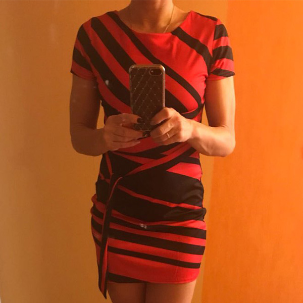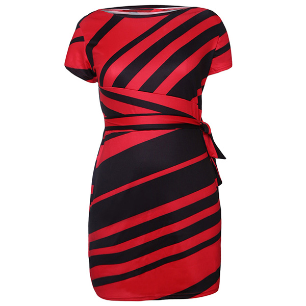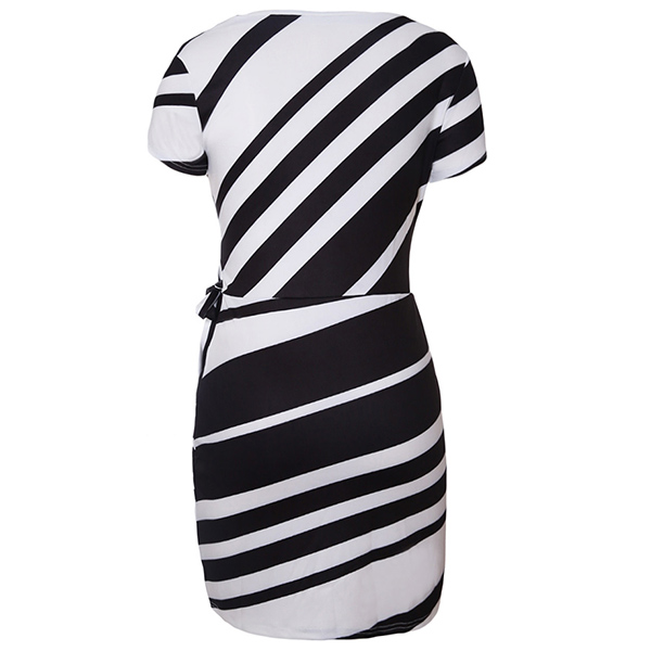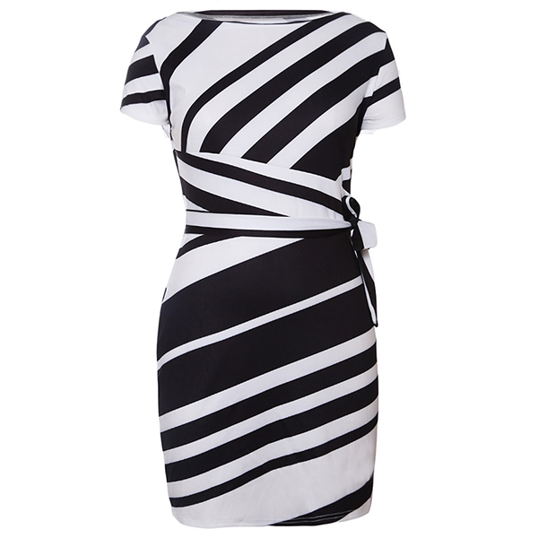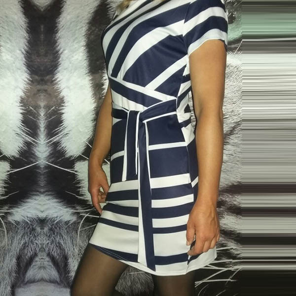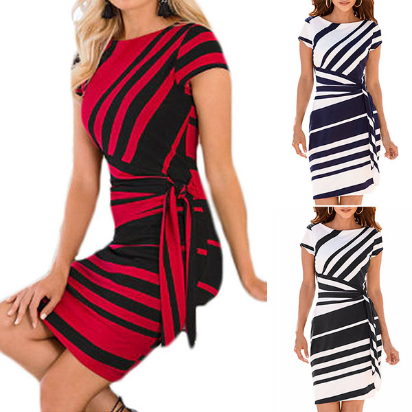 suggest you this delicate dress? It is designed with striped element,accompanied with short sleeve,