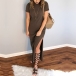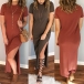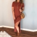 Let this chic dress accompany your relaxed weekend time. Solid color style,outfitted with short sleeve,round neck