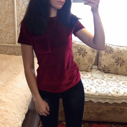 This t-shirt features a solid color tone,designed with short sleeve,round neck and a chest patch pocket,simple,