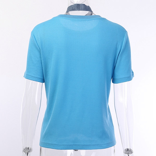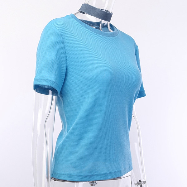 Solid color style,with short sleeve and round neck design,this piece bears a simple design style,