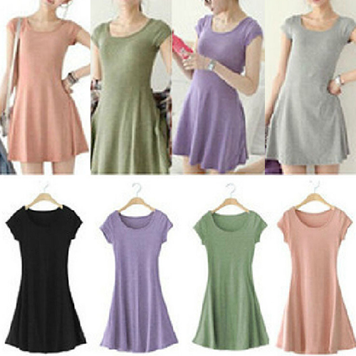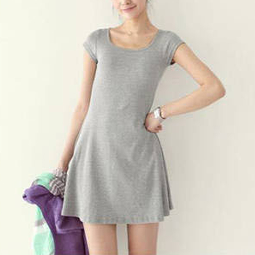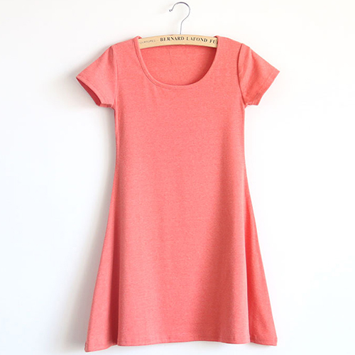 This simple but stylish t-shirt dress is your wardrobe essential. It features solid color style,with short sleeve