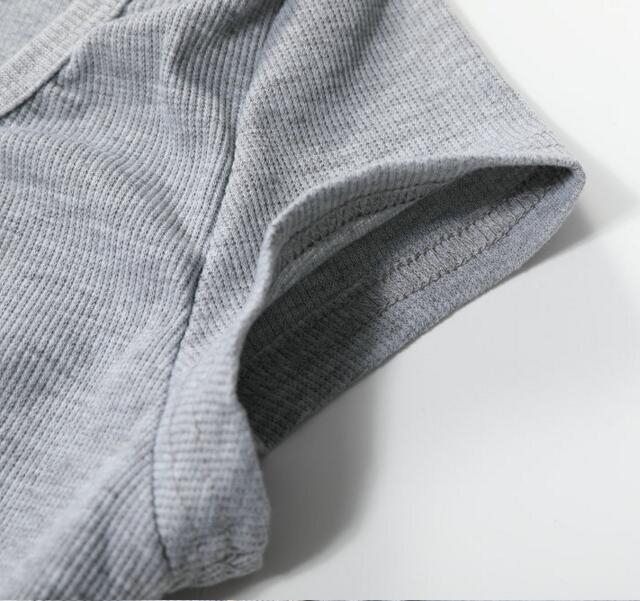 Neckline part with buttons design allows it to be a v-neck style. Designed with short sleeve,round neck
