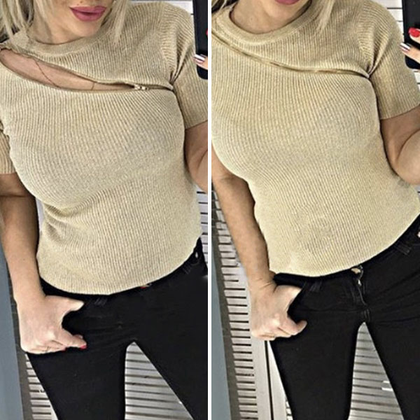 This t-shirt comes with a solid color,finished with short sleeve,round neck and a fit silhouette,which not