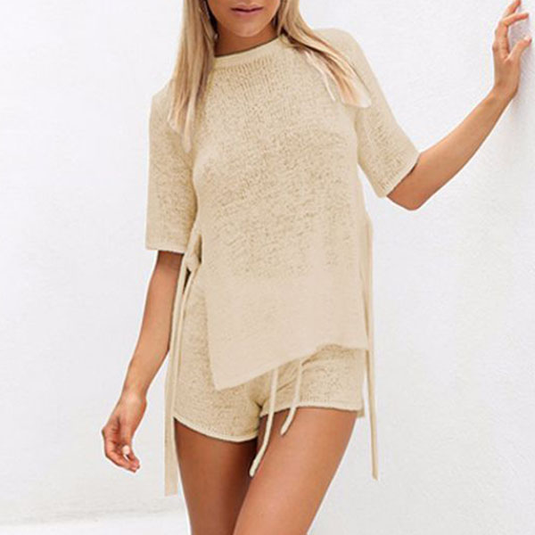 Make your summer style have an updated with this two-piece set! Solid color style,including a short sleeve round neck t-shirt