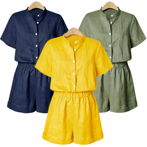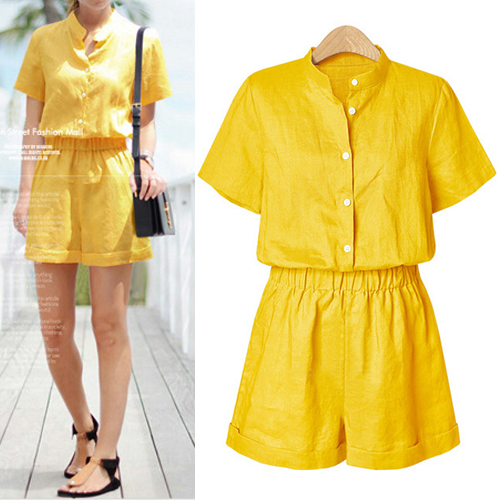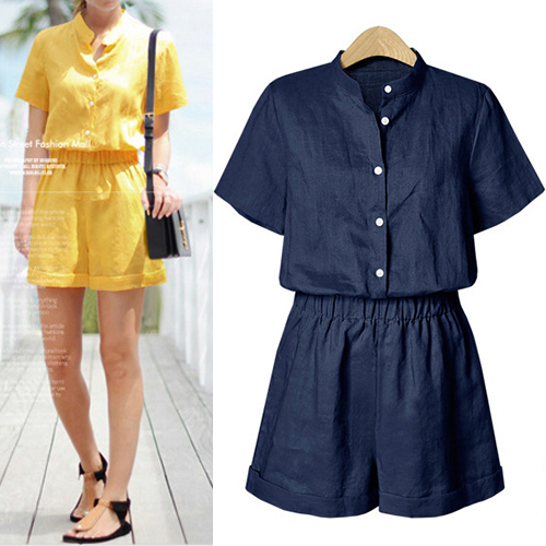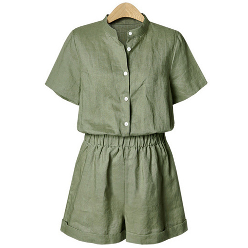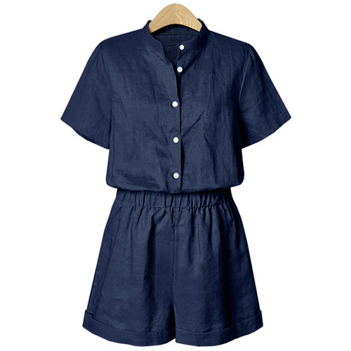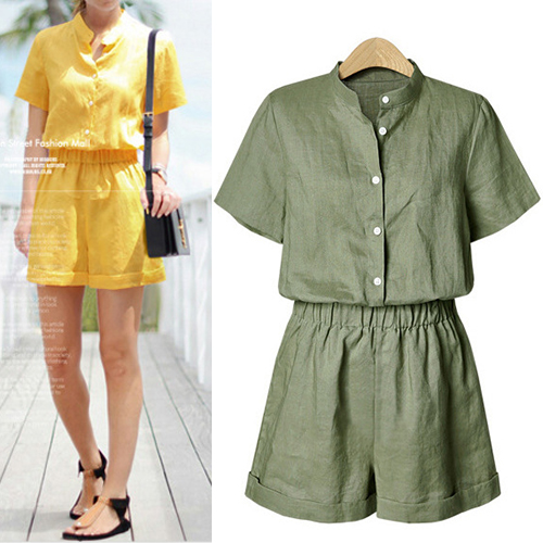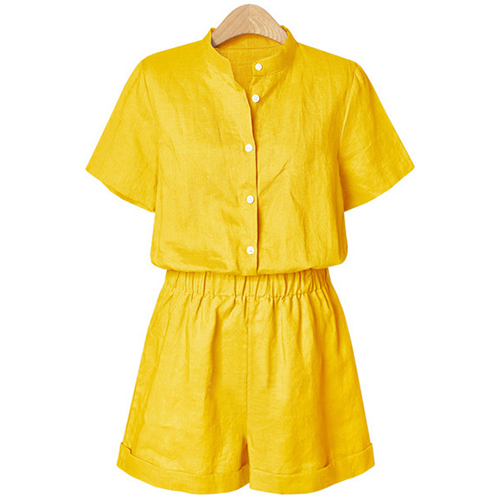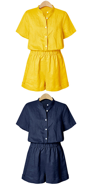 a solid color,with short sleeve,stand collar and an elastic waist,stylish and charming. No matter for your