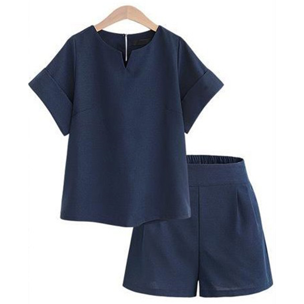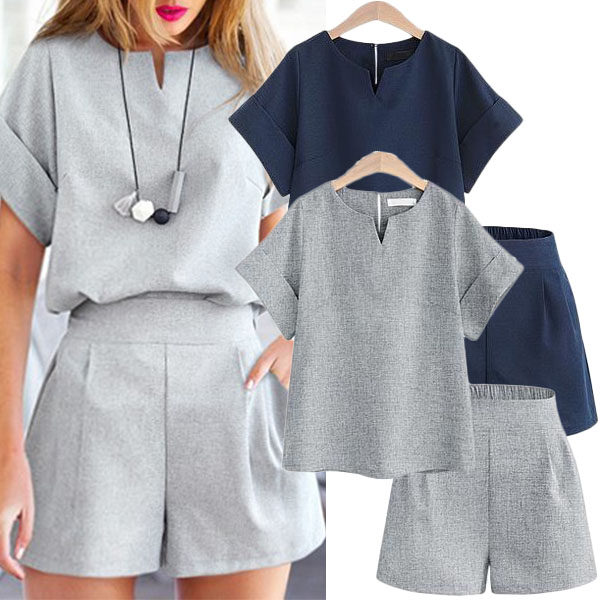 short sleeve top and a high waist shorts,this two-piece set definitely can give you a cozy yet stylish style.