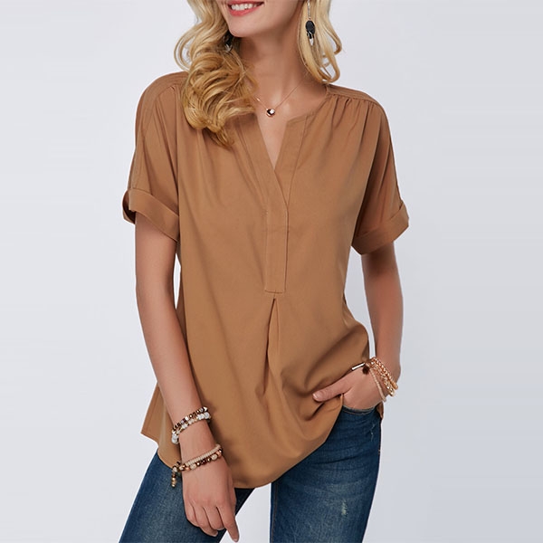 Thanks to the solid color tone design,this blouse can give you a simple yet generous vibe.