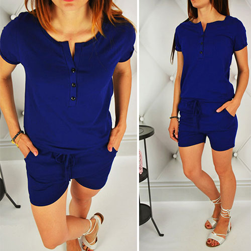 designed with short sleeve,v-neck,drawstring waist and crafted from soft and breathable fabric,this romper is sure to
