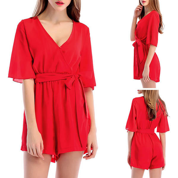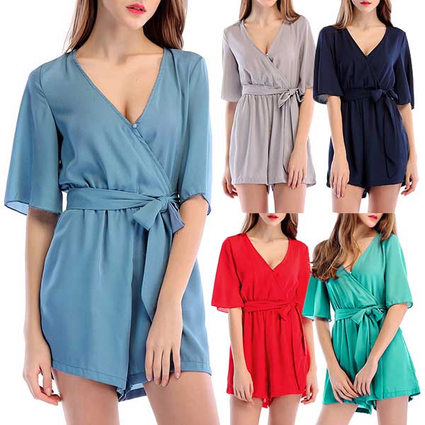 focused on this chiffon romper! Solid color style,its soft and breathable fabric can offer you a cool and