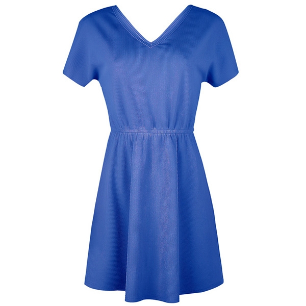 Comes with a solid color,finished with short sleeve, V neck and an elastic waist,