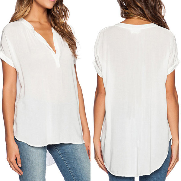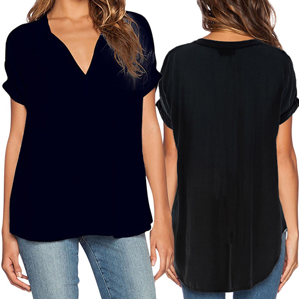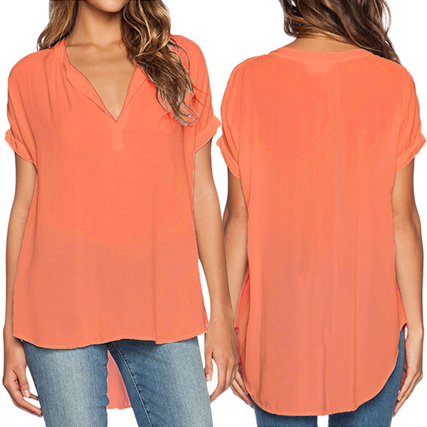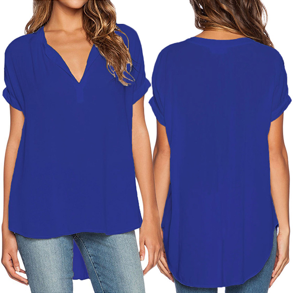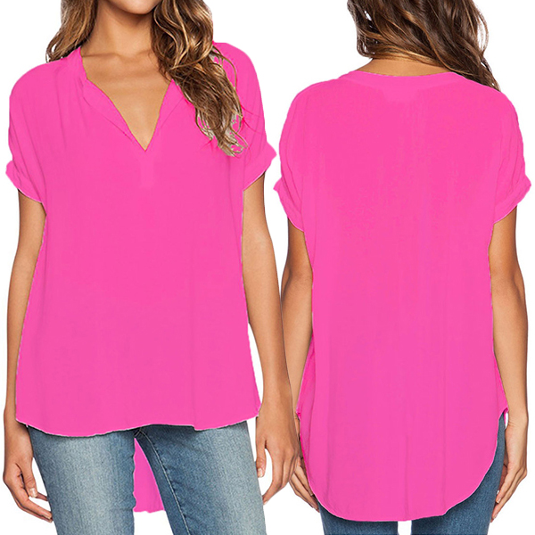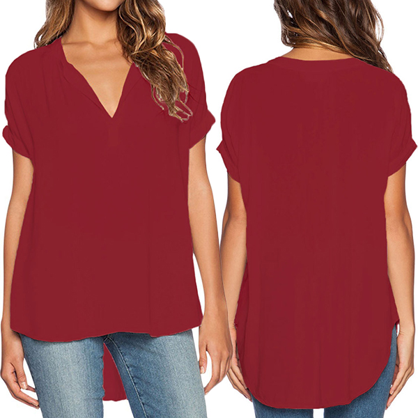Update your summer wardrobe ensemble with this chiffon blouse. Solid color style,designed with short sleeve,v-neck