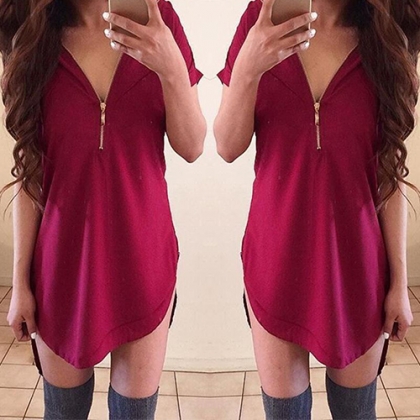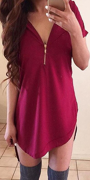 the perfect choice. Solid color style,outfitted with short sleeve,v-neck,high-low hem and a relaxed