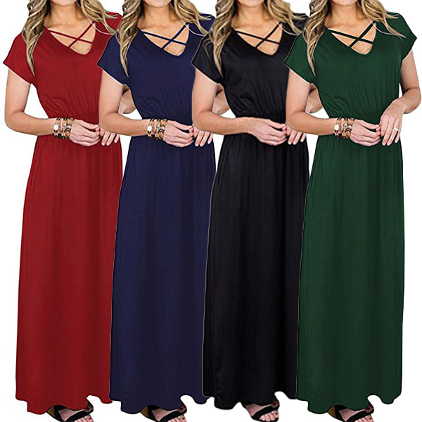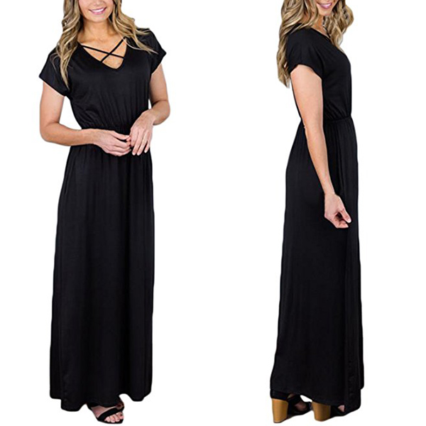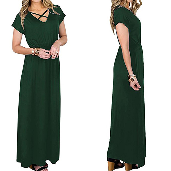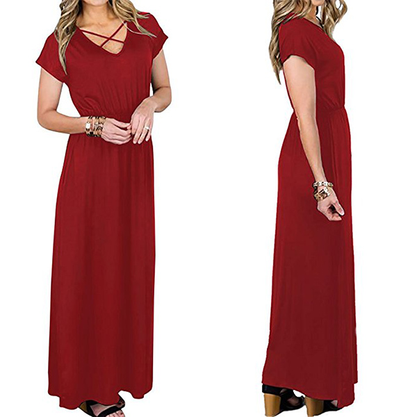 This dress comes with a solid color,elegant yet stylish,while the v-neck design can enhance your feminine appeal.