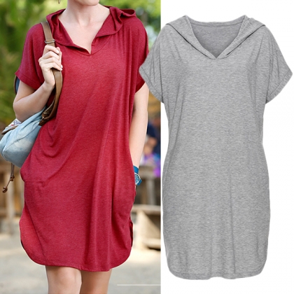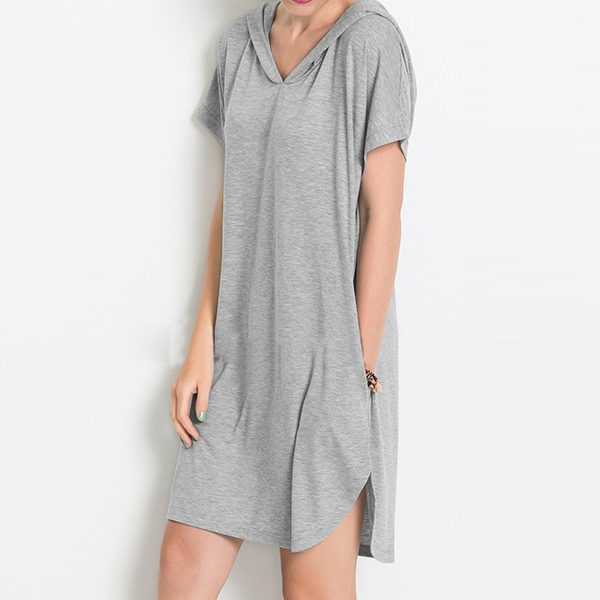 and breathable fabric,finished with short sleeve,v-neck,hooded and a loose silhouette,this simple dress is sure to give