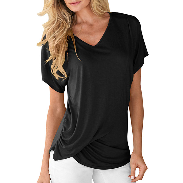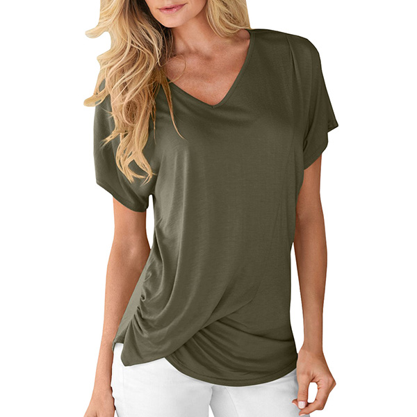 Solid color style,crafted from soft and breathable fabric,with short sleeve,v-neck and irregular hem,