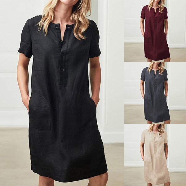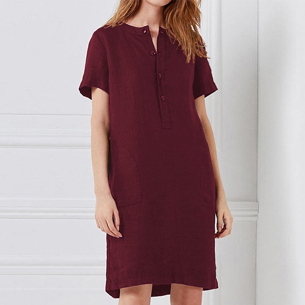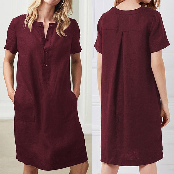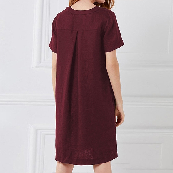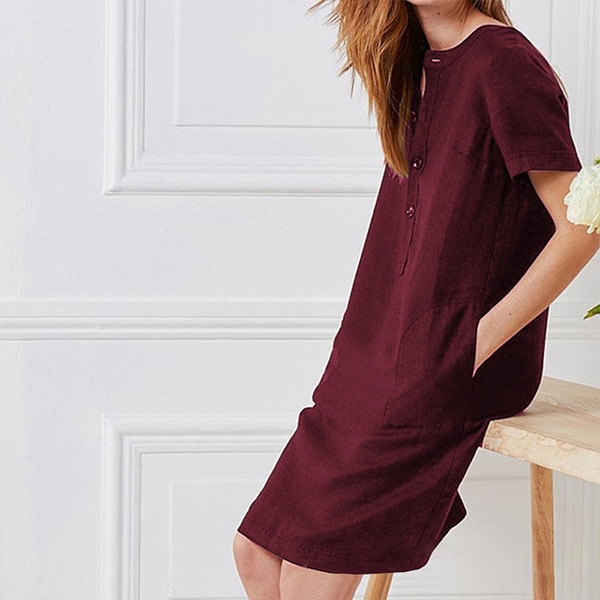 On your lazy days or casual weekends,this simple,cozy yet stylish dress is your perfect partner. It boasts a solid color,with short sleeve,