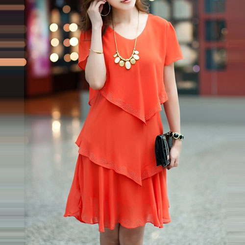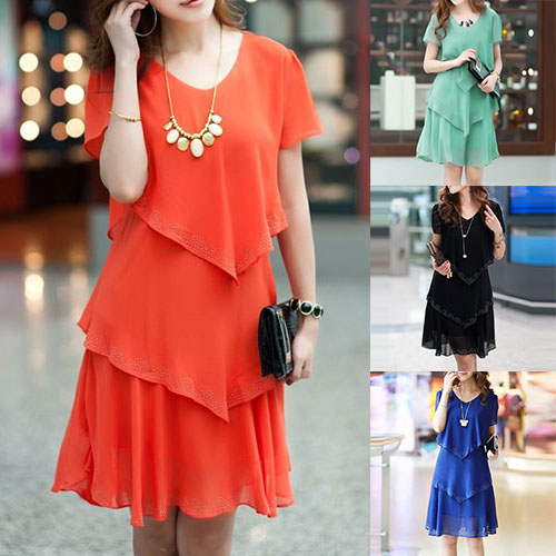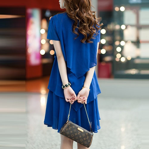 color style,styled with short sleeve,v-neck and multilayer hem design,chic and delicate. You can also try to add a necklace for a more charming look.
