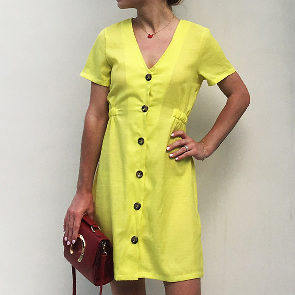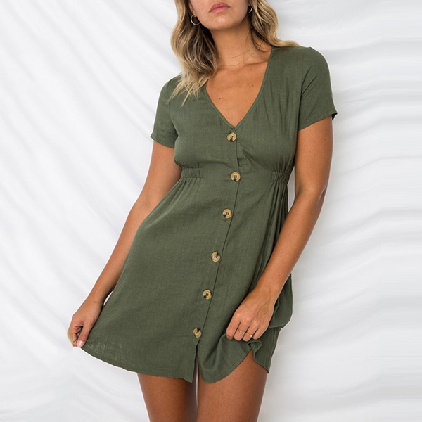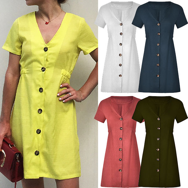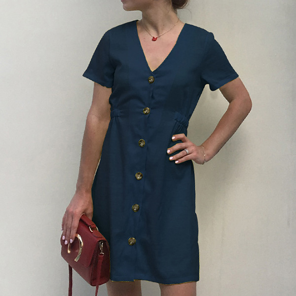 gives you a simple but elegant vibe,while the short sleeve,v-neck and single-breasted design make this piece