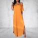 For your weekend trips,this maxi dress can be a wise choice. Boasts a solid color,