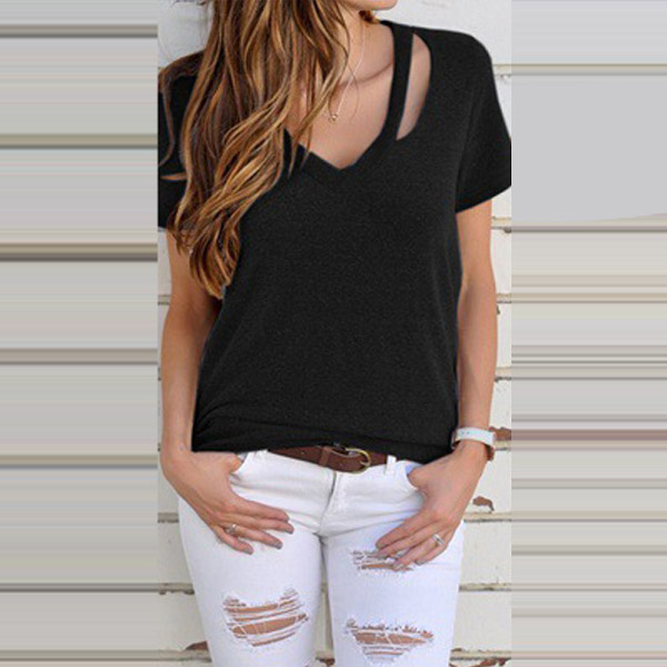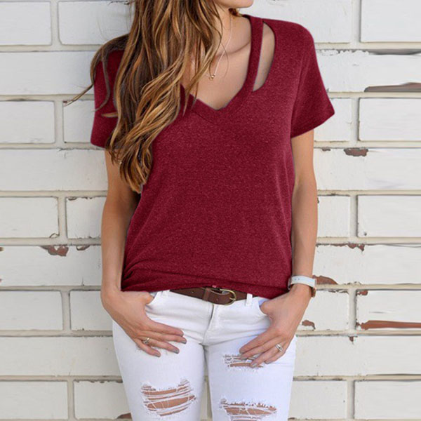 It comes with a solid color,finished with short sleeve,v-neck and crafted from soft and breathable fabric,