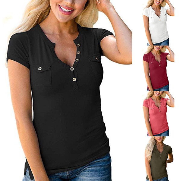 with short sleeve,v-neck an d a fit silhouette,simple in design style,but it can ensure you a