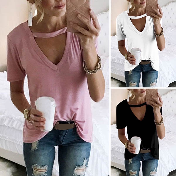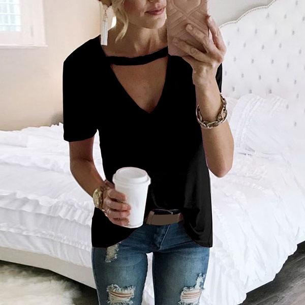 It boasts a solid color,finished with short sleeve and v-neck design,this piece allows