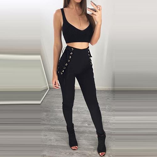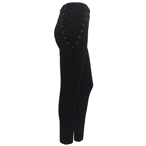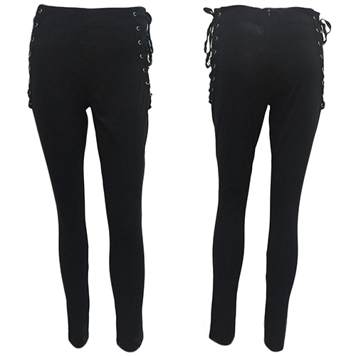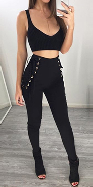 a good chance for you. Solid black hue is paired with side lace-up, high waist and slim fit