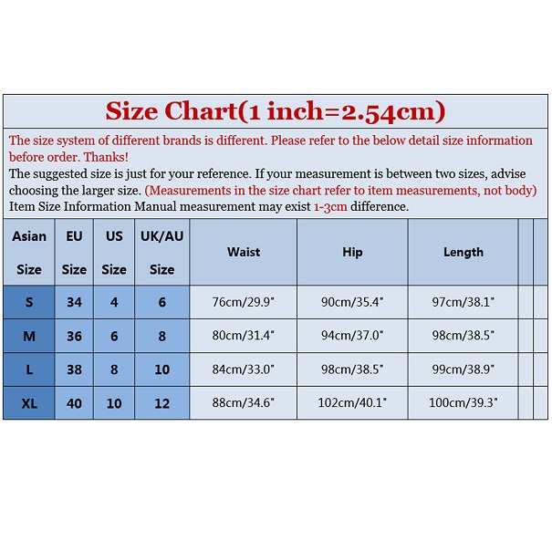 S : Waist : 76cm(29.92"); Hips : 90cm(35.43"); Length : 97cm(38.19");