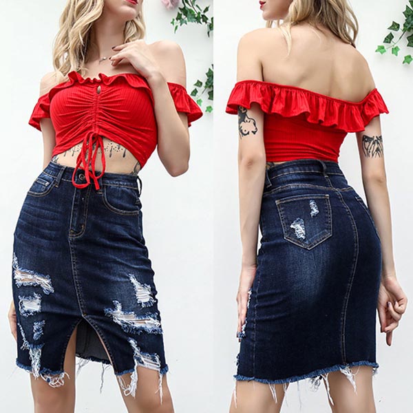 your seductive curve and sexy figure.Ripped design which makes you more charming and attractive.