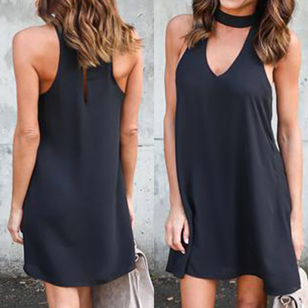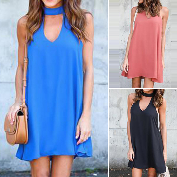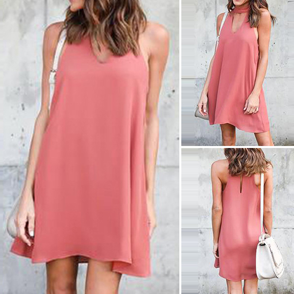 Strolling on the street with this dress to enjoy your casual weekends. Solid color style,designed with sleeveless,