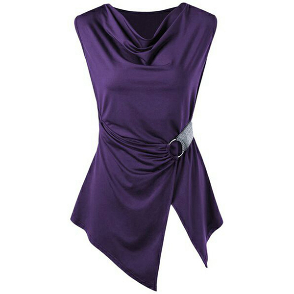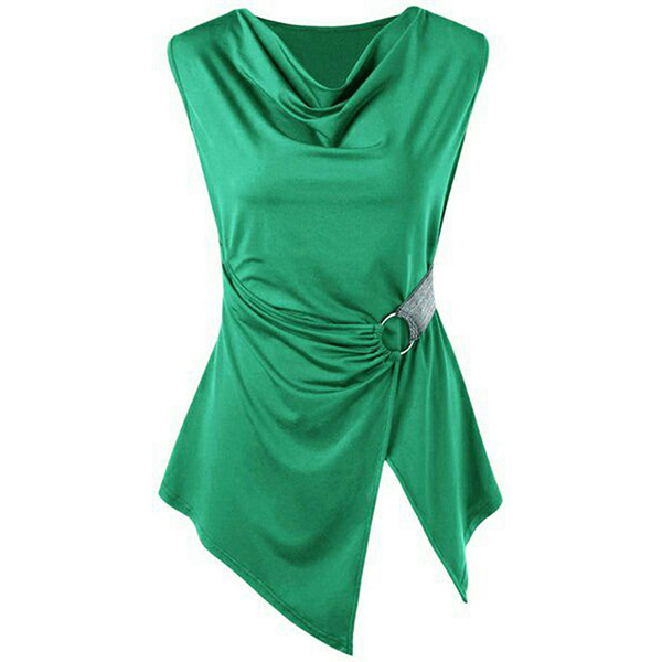 this sleeveless top is a good example. Solid color style,the cowl neck and irregular hem design
