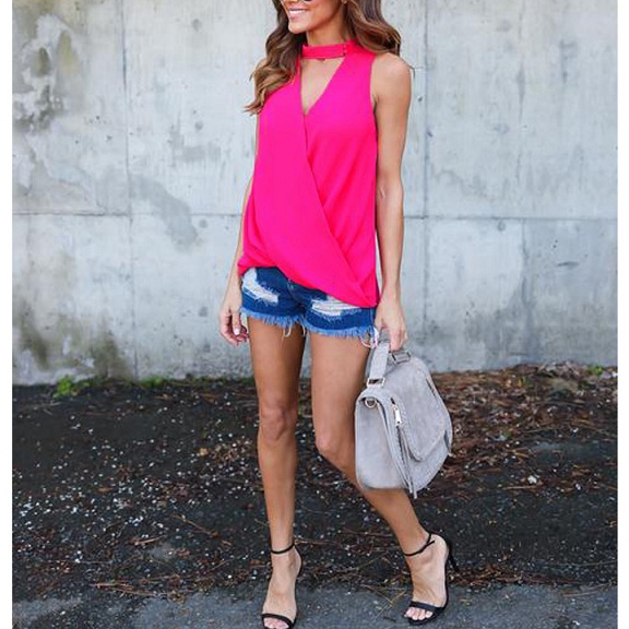 summer staple. Solid color style,outfitted with sleeveless,crossover v-neck and a high-low hem,chic,edgy and stylish.
