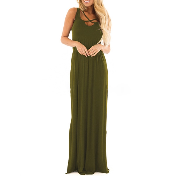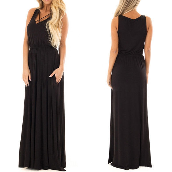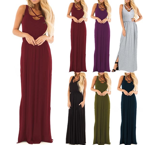 You can look effortlessly charming and beautiful in this maxi dress. Solid color style,with sleeveless,