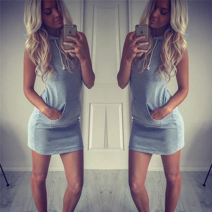 This dress is your best choice for some warm weathers. Solid color style,with sleeveless and hooded design,