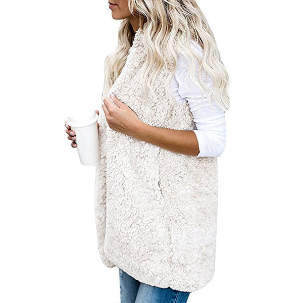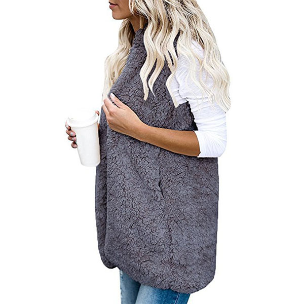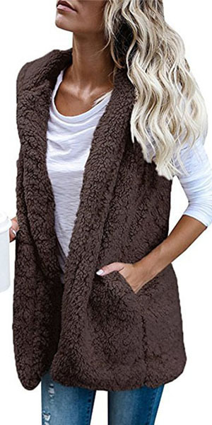 You can have an easy transition from early autumn to chilly days with this sleeveless cardigan. It features