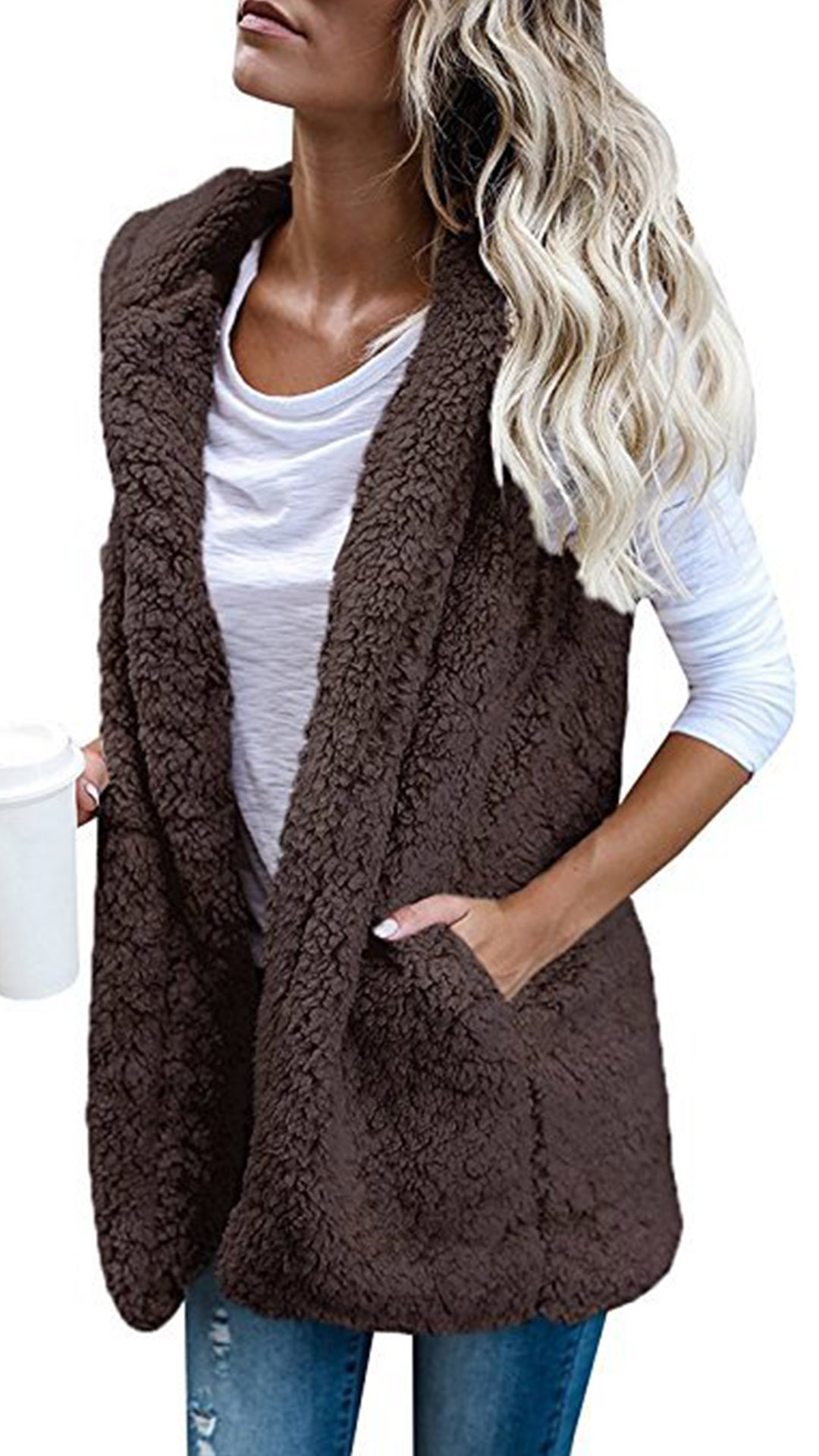 fabric can keep you warm and comfy. Finished with sleeveless and hooded silhouette,this wonderful piece