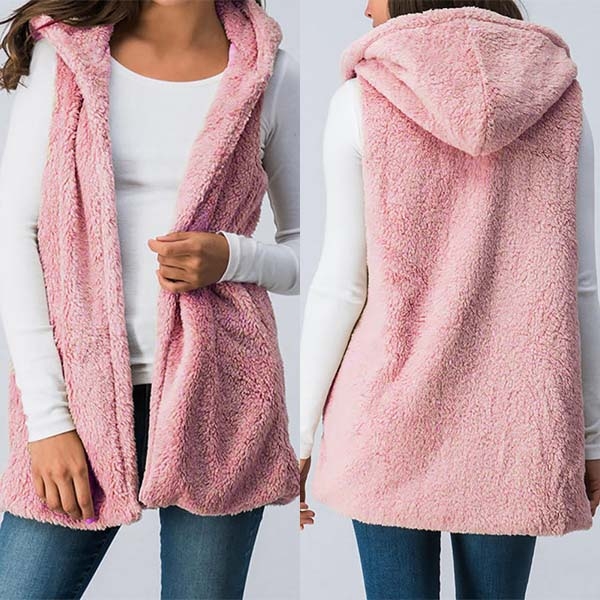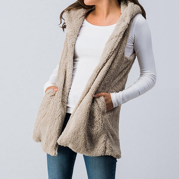In this early autumn,this plush vest can be your good choice. It is styled with solid color,sleeveless and