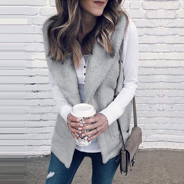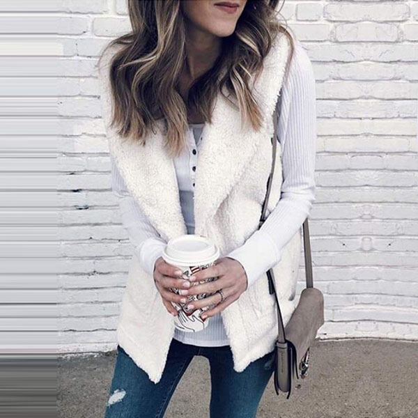 This plush vest can be one of your good choices when the weather gets cold. Comes with a solid color,