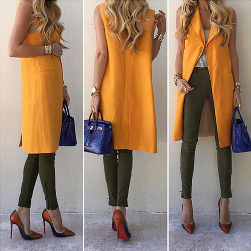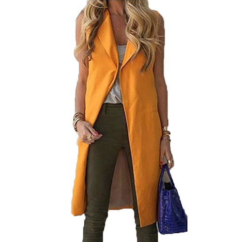 The sleeveless coat can be a perfect companion for your work days. It is completed with solid color and sleeveless design, with lapel patterns,