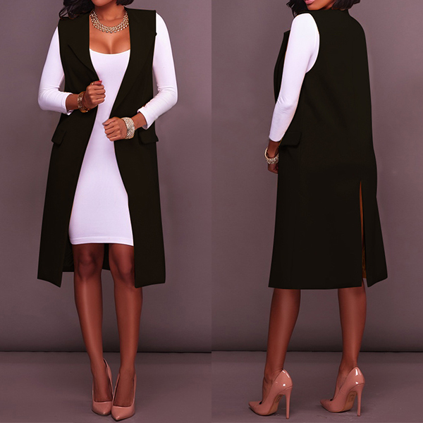 with sleeveless,notched lapel and a clean and fit silhouette,elegant and refined. You can pair it with your tight dress,