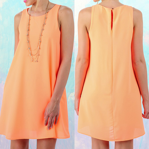 Solid color style,crafted from soft and breezy chiffon material,with sleeveless,round neck and a