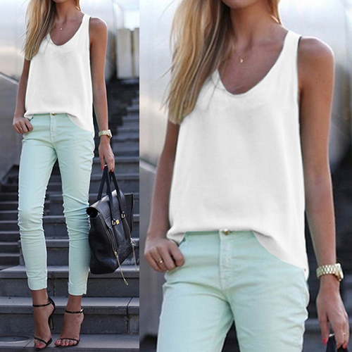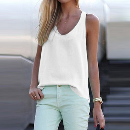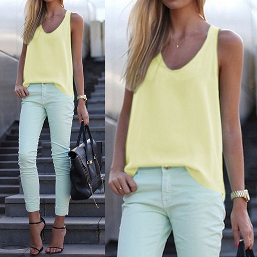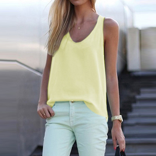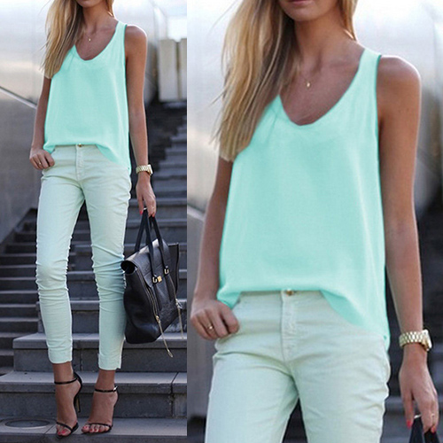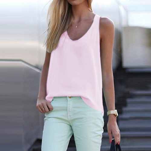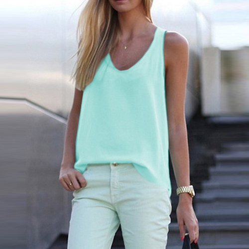 Solid color style,crafted from soft and breezy chiffon material,with sleeveless and round