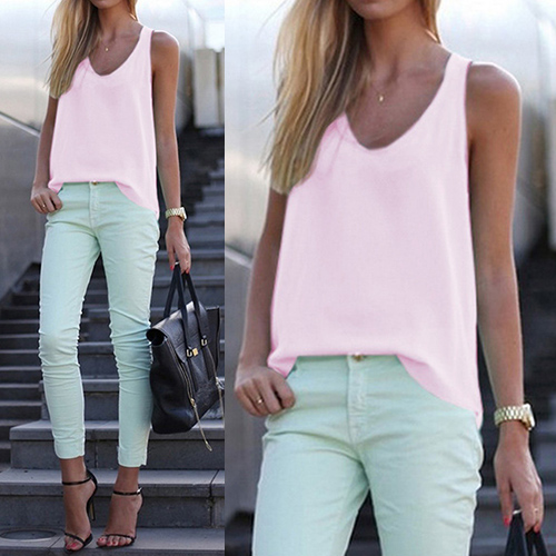 neck design,this chiffon tops can keep you cool and comfy all day. Perfect for pairing it