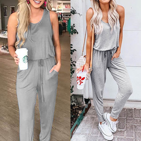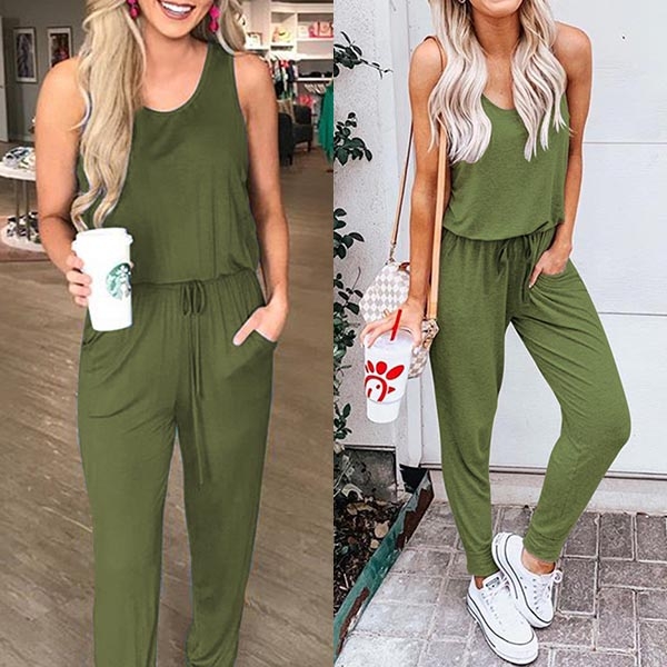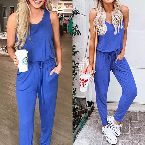Except for dresses,this sleeveless jumpsuit also can be your good choice for the coming summer.
