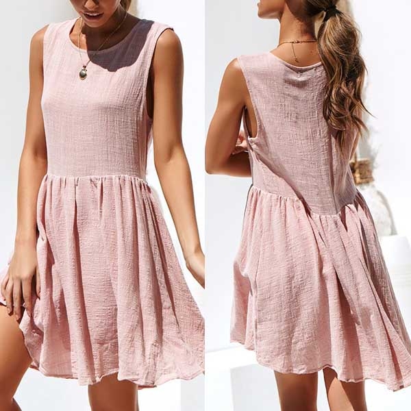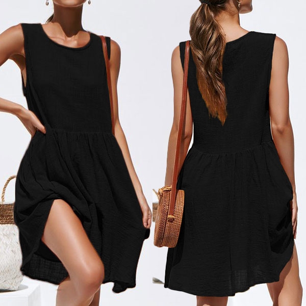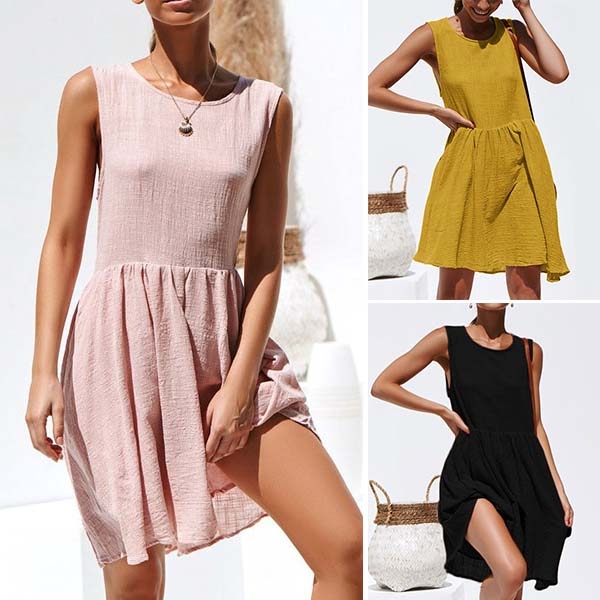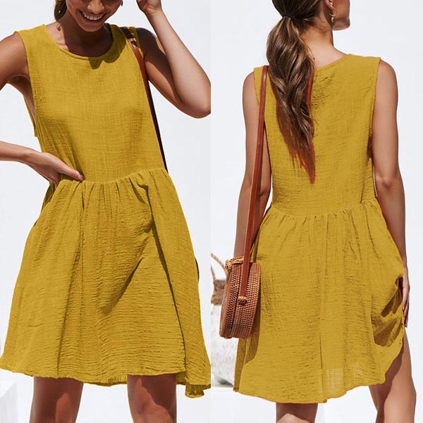 Greet the sunny summer days with this simple,cozy yet stylish dress. Finished with solid color,sleeveless