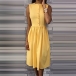 Finished with sleeveless,round neck and front-button design,this wonderful dress
