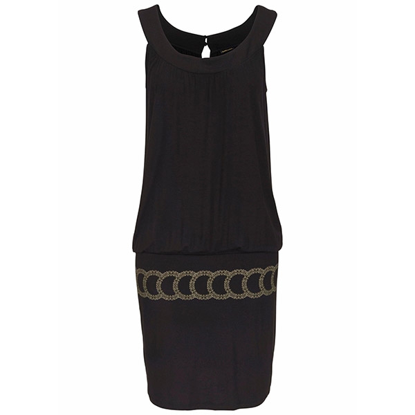stylish look. The chic printed design at the waist part enhances the charm of this dress.