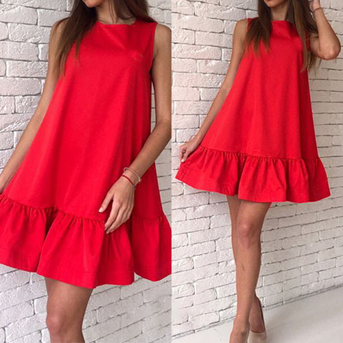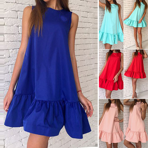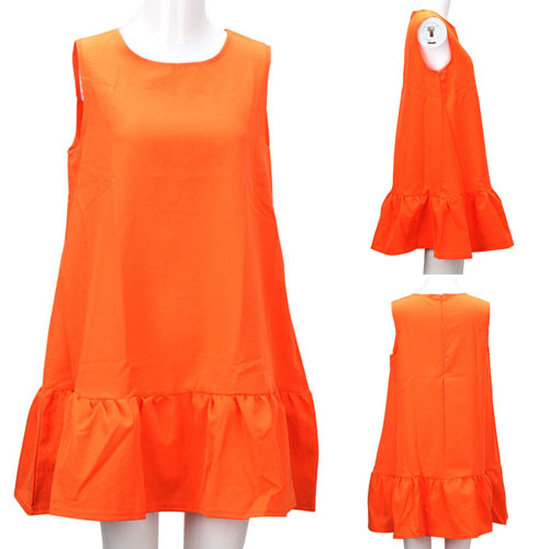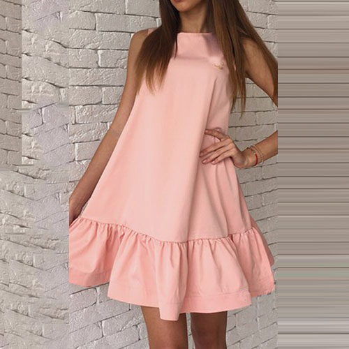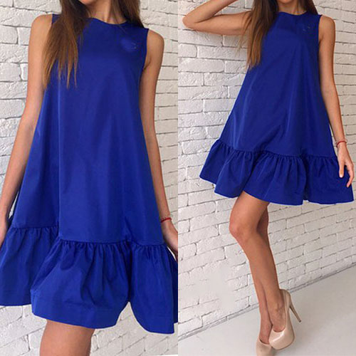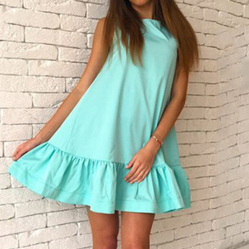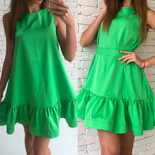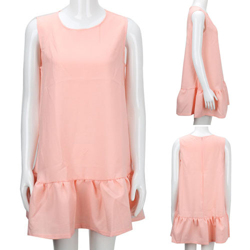 Update your fresh and sweet summer style with this dress. Solid color style,with sleeveless,round neck,