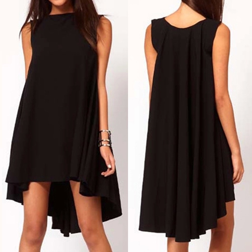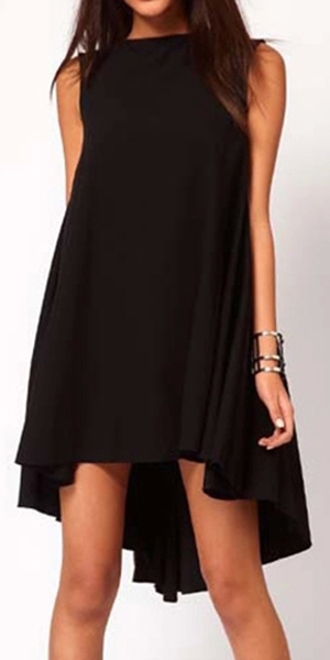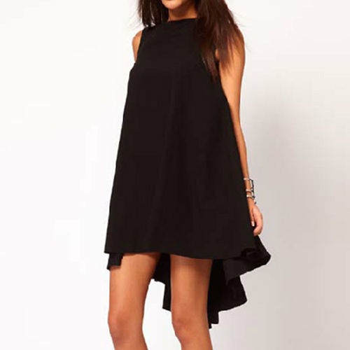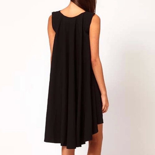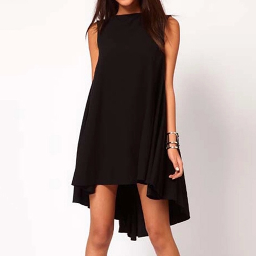 sleeveless,round neck,a high-low hem and a loose silhouette,this simple dress is a good way to brighten up your day.