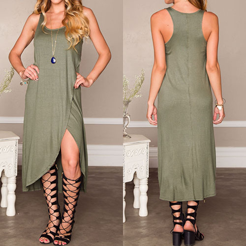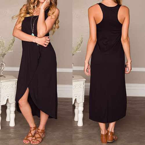 Easy to achieve a chic and stylish look via this dress. Solid color style,with sleeveless,round